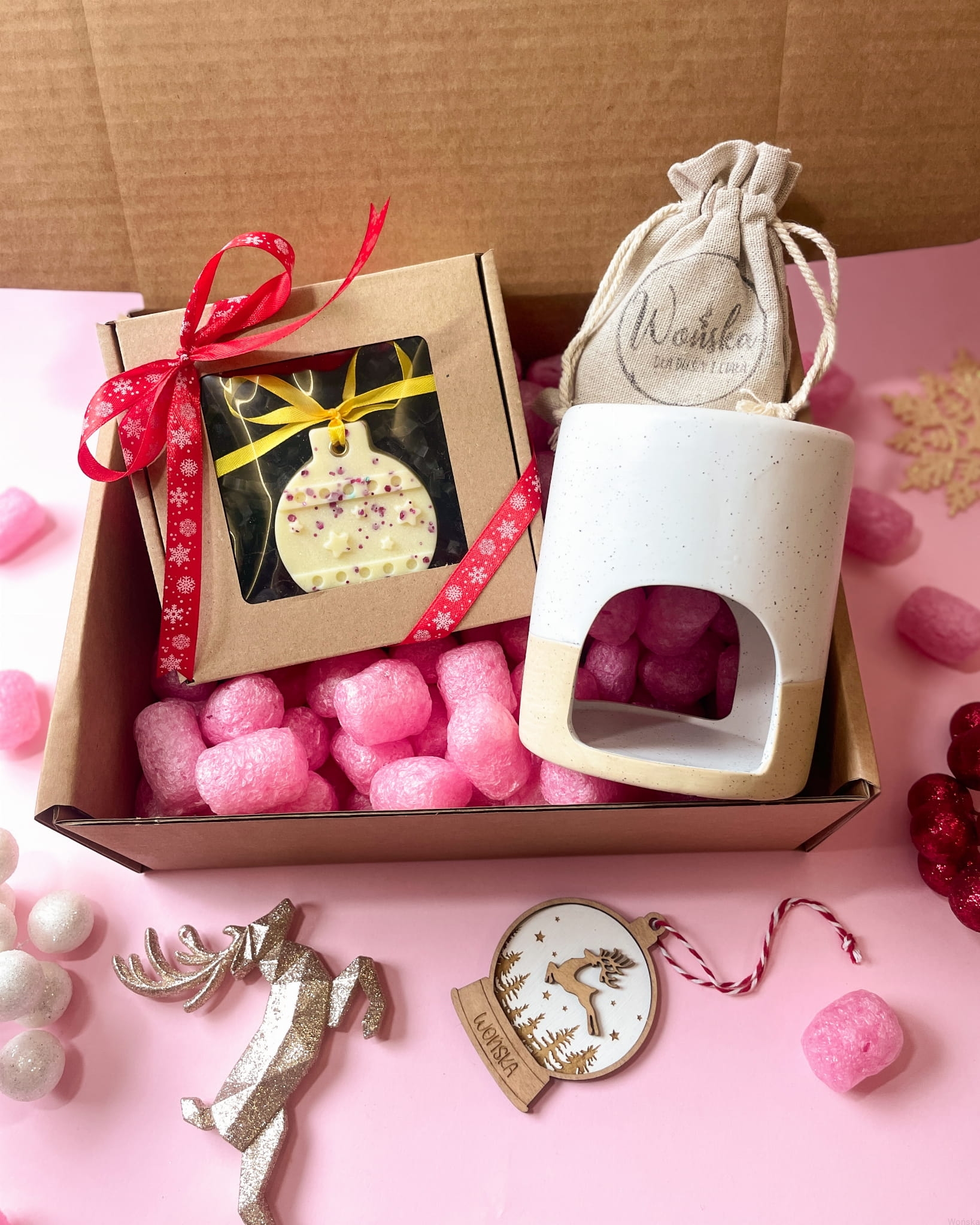 - Opakowanie: pudełko kraft z wstążką – gotowe na prezent