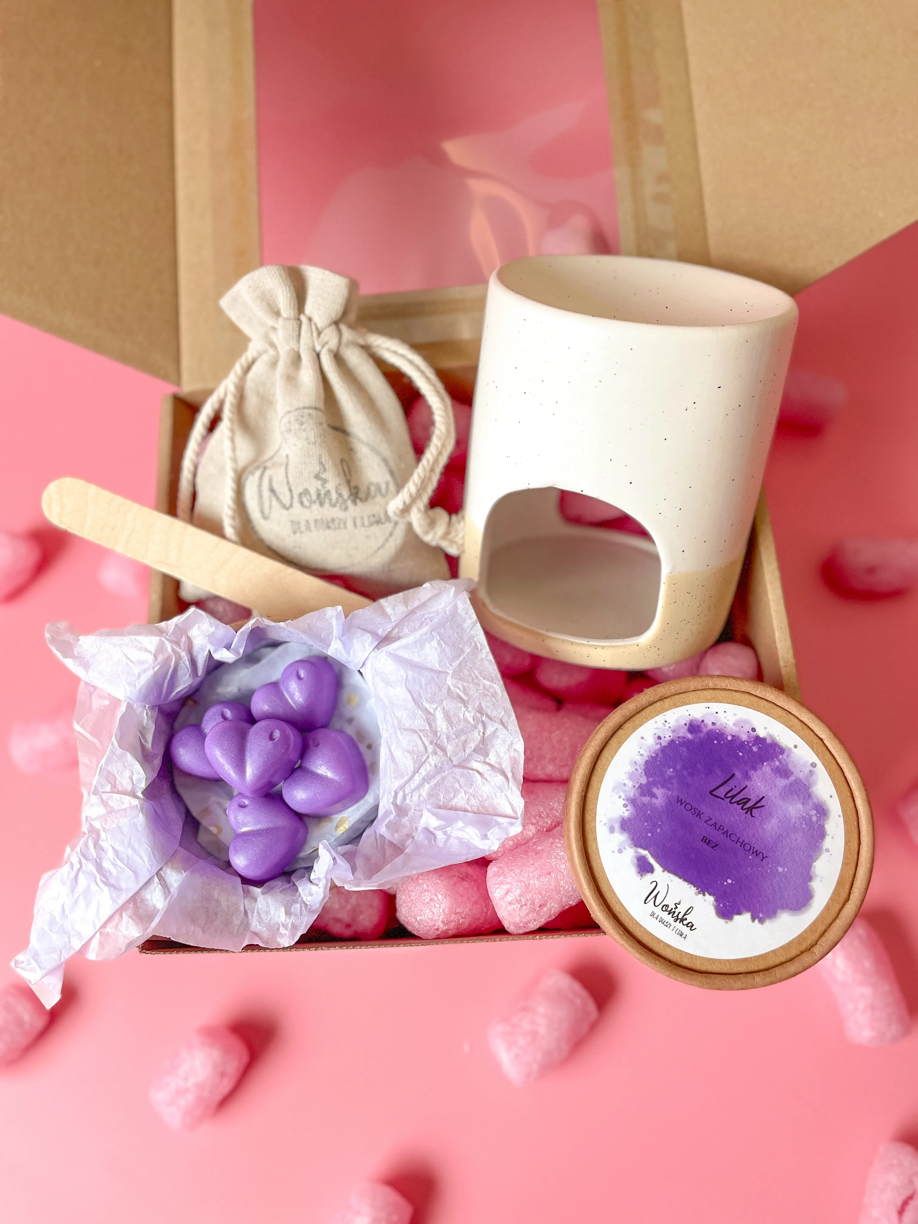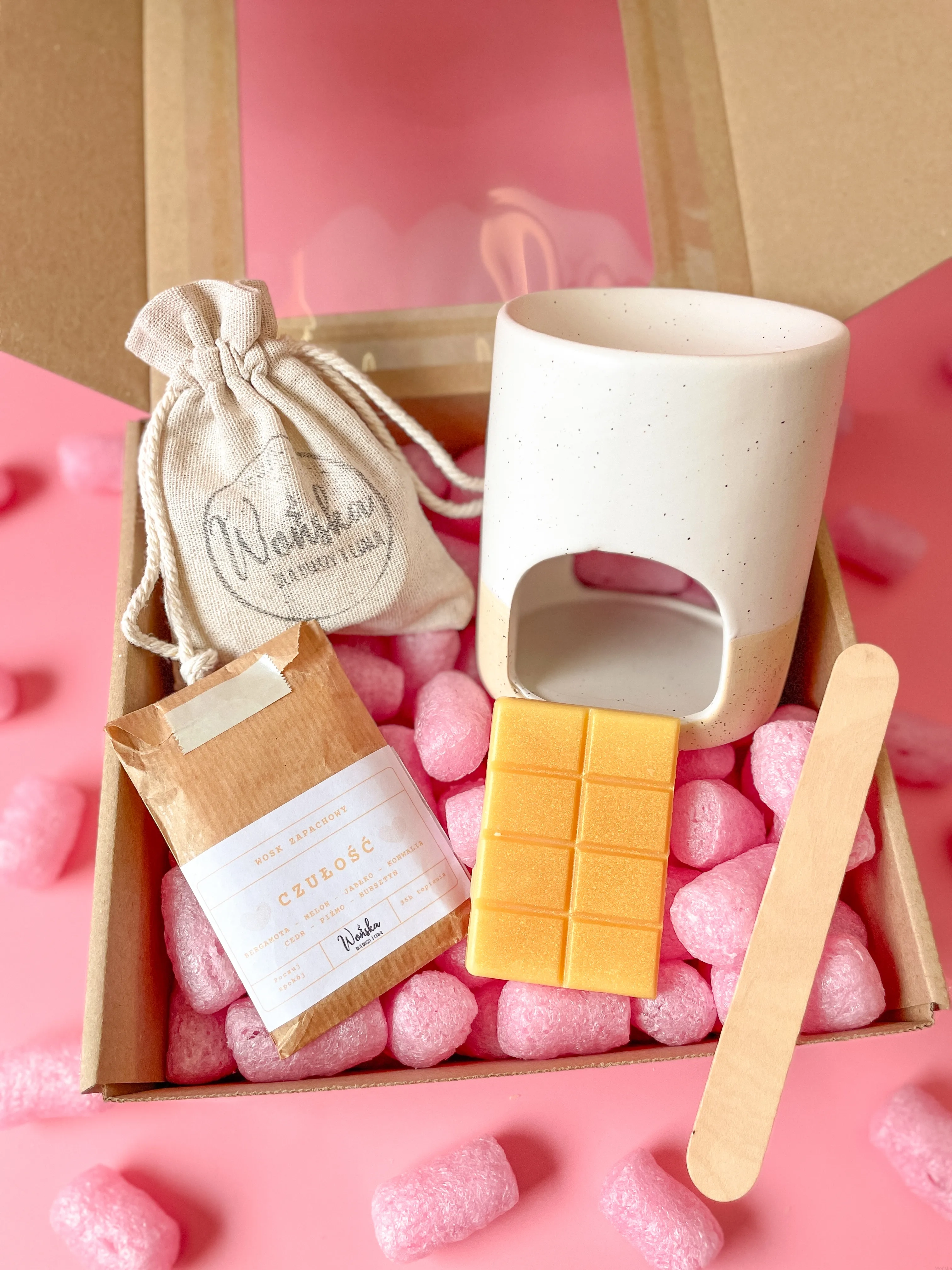 W zestawie znajdziesz wszystkie elementy potrzebne do rozpoczęcia korzystania z wosków zapachowych: